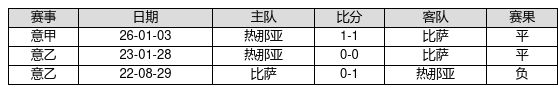 比萨 VS 热那亚两队近10年的交战次数为3场,比萨0胜2平1负,赢球概率为0.0%,平局概率为66.7%,输球概率为33.3%。